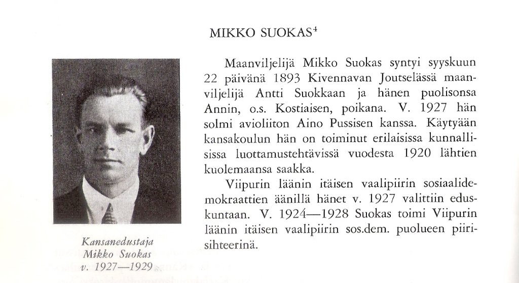 Напомню, речь о довоенном финском доме, который сохранялся до недавнего времени. Кто же такой был этот Суокас? Про него написано в книге Пааво Киуру "Кивеннапа":