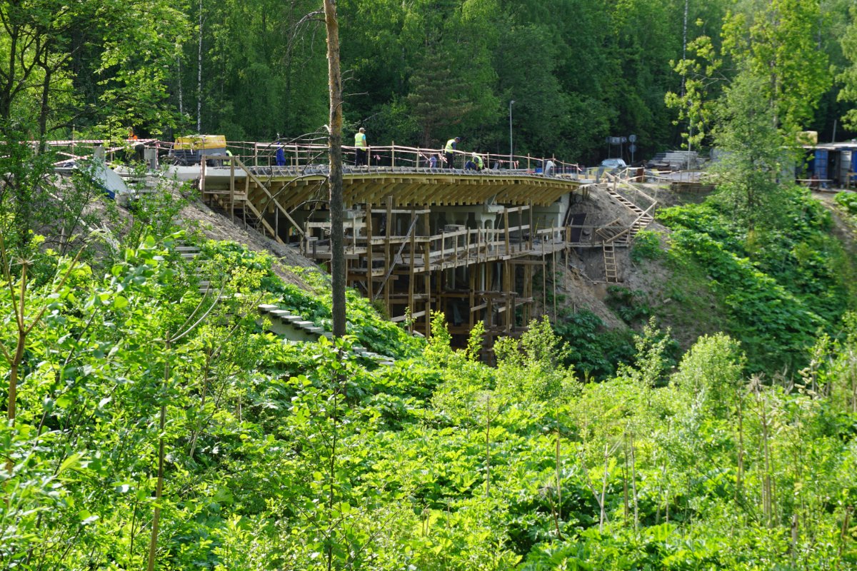 Движение по мосту открыто еще в июне, но работы не закончены. Доделывают перила и всякую мелочь.