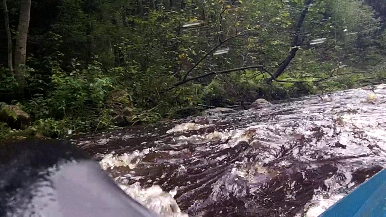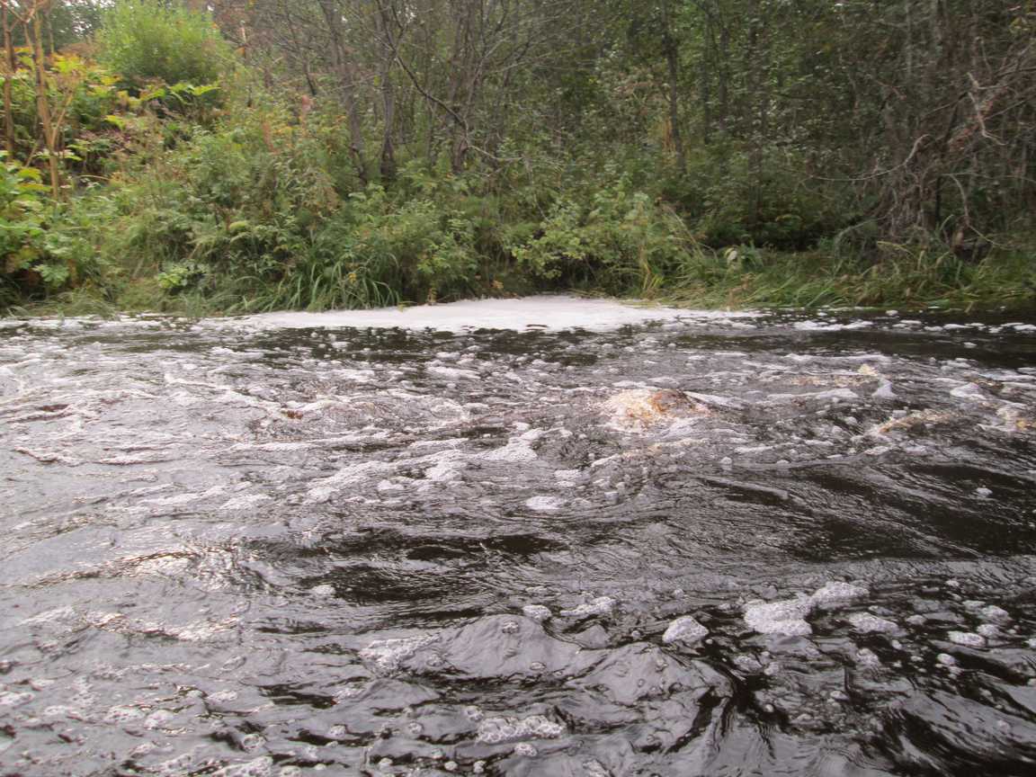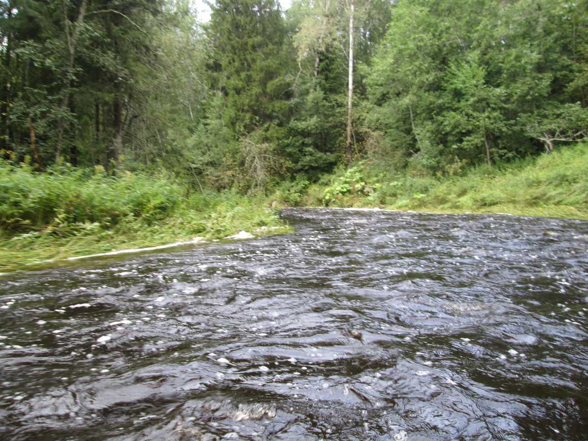 При спуске- пороги под ж/д мостом- только вброд, а под автомостом- с ходу! При подъеме и автомост (максимум по колено) и под ж/д (тоже ниже колена, ближе к правому берегу)- проходи вброд! Много участков с подводными камнями, но они видны сквозь воду- внимательно! От ж/д до плеса 4,5 км по реке...