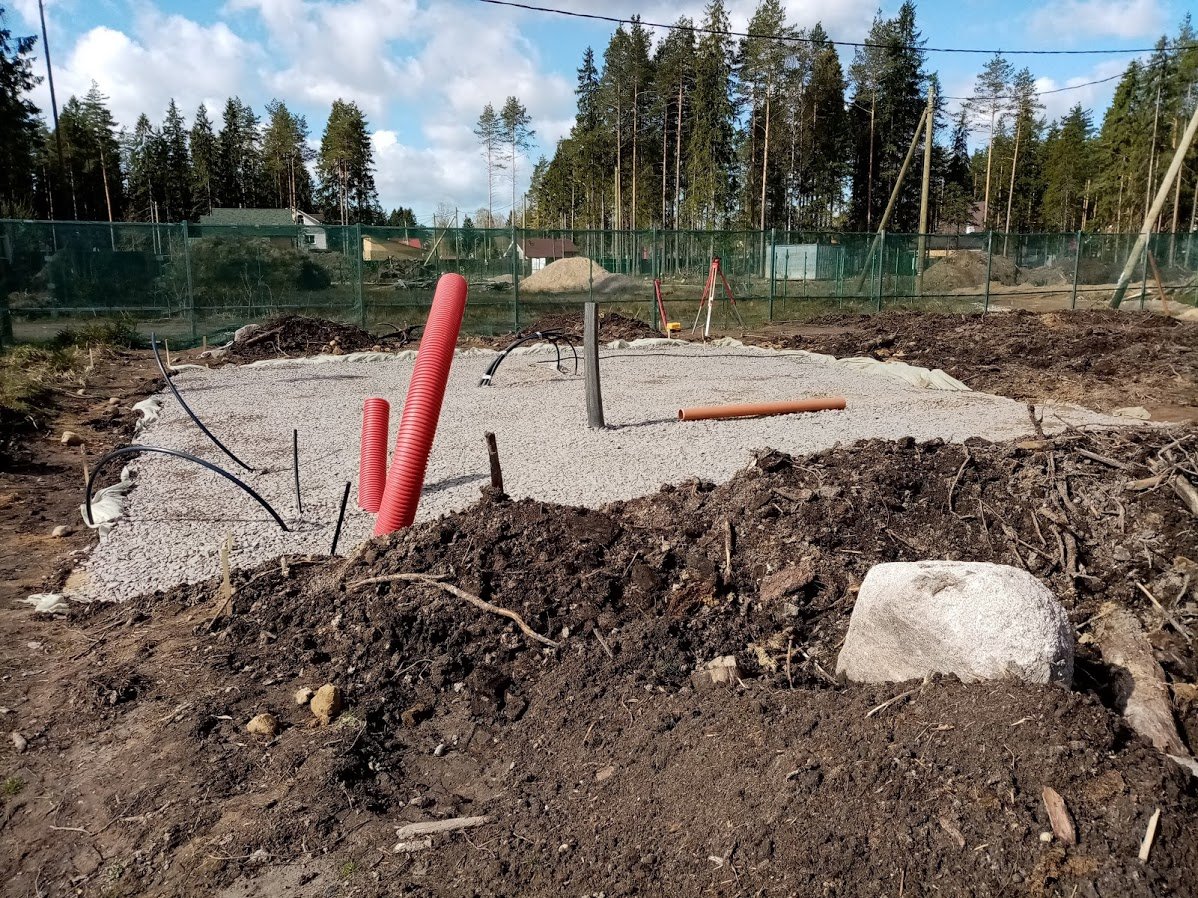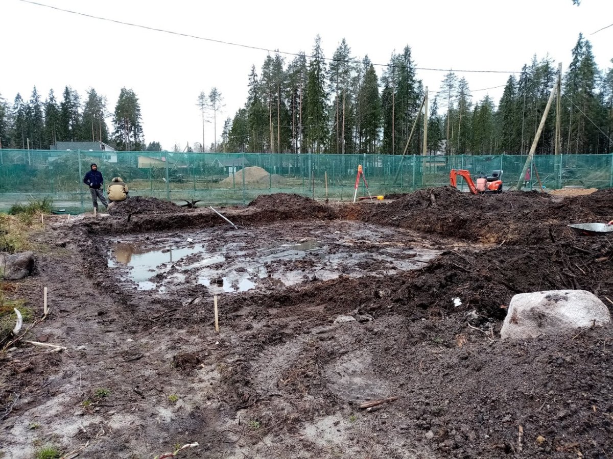Классический случай для многих мест в Белоострове. Участок имеет небольшой уклон, но местами вода после дождей стоит.