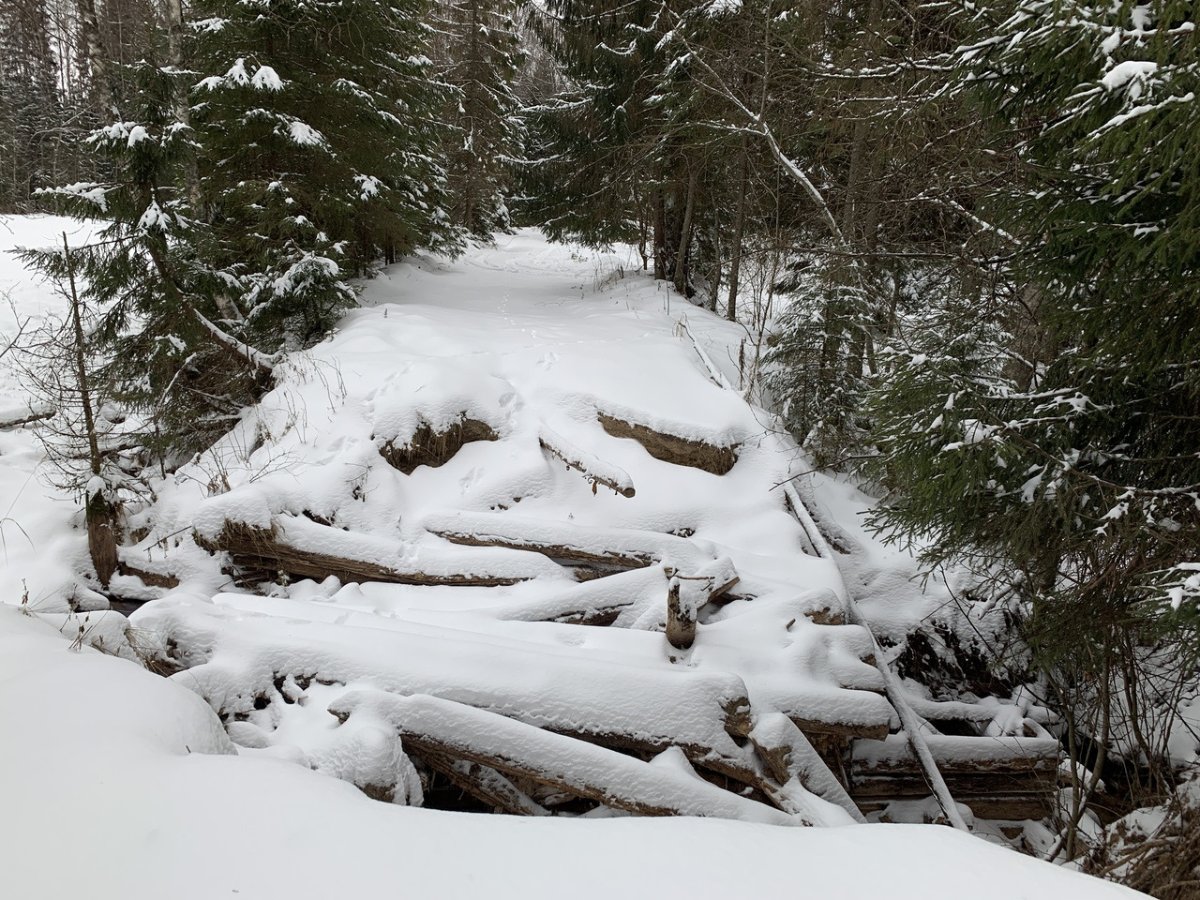 Не,тут шишигой попахивает.Мостик был узенький уже летом,на Ниве колёса по краю шли.