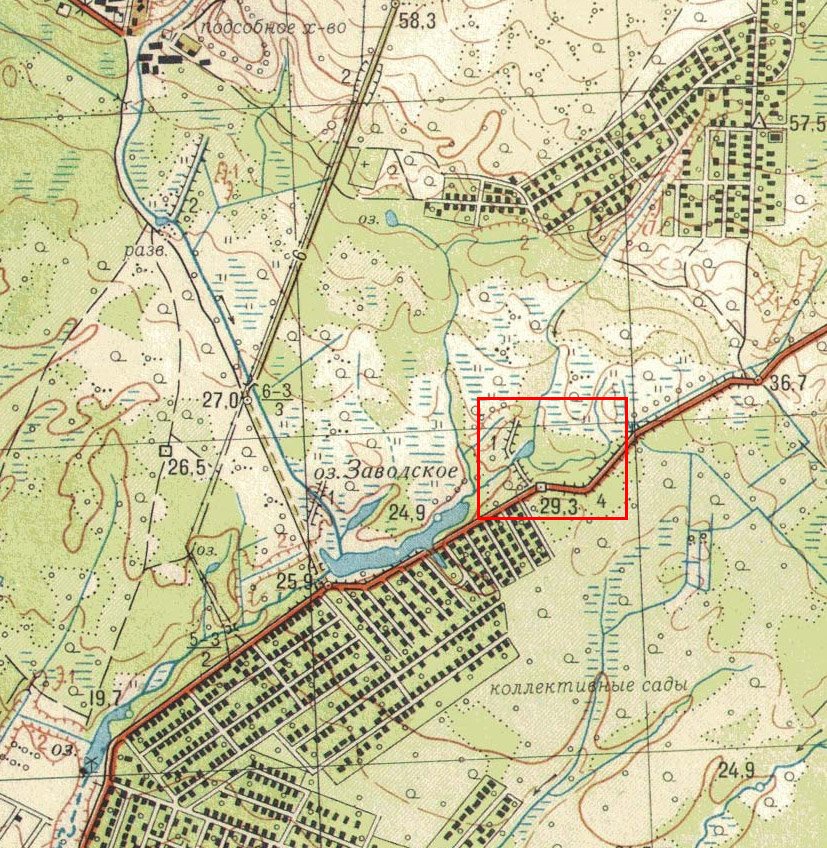 Теперь понятно. Мне казалось, что в 70-е там уже и остатков озера не было. Впрочем, сам не видел. На картах во всяком случае нет. В 60-е еще может что-то и было. И - удивительно, что там можно было проехать. Теперь в это поверить совершенно невозможно.