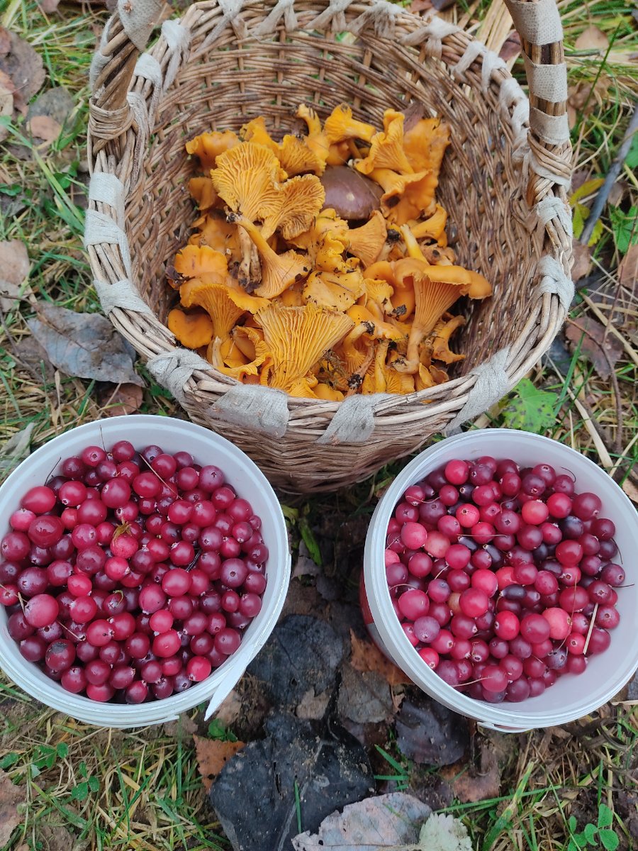 В субботу набрал корзинку за Пасторским: лисички, три подберезовика, несколько моховиков. Также пособирал клюкву полчаса, ее в этом году хватает. Причем лисичек достаточно, есть как старые, так и нововыросшие, маленькие. Дошел аж до Нахтоловского оз. и минут 15 поблеснил. Но это скорее для галочки: блесну не оборвал и на том спасибо. Клюква там особо крупная была. Время, к сожалению, поджимало, торопился в Рощино на футбол