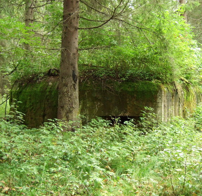 Первый пятиамбразурный дот находится на небольшом возвышении, как на полянке. Вокруг все почищено. Дот почти ошкурен. Самая засада ожидала внутри. Внутри была закрытая дверь. Если раньше двери срезали, то теперь их наглухо закрывают. Наверное, началась тихая приватизация.