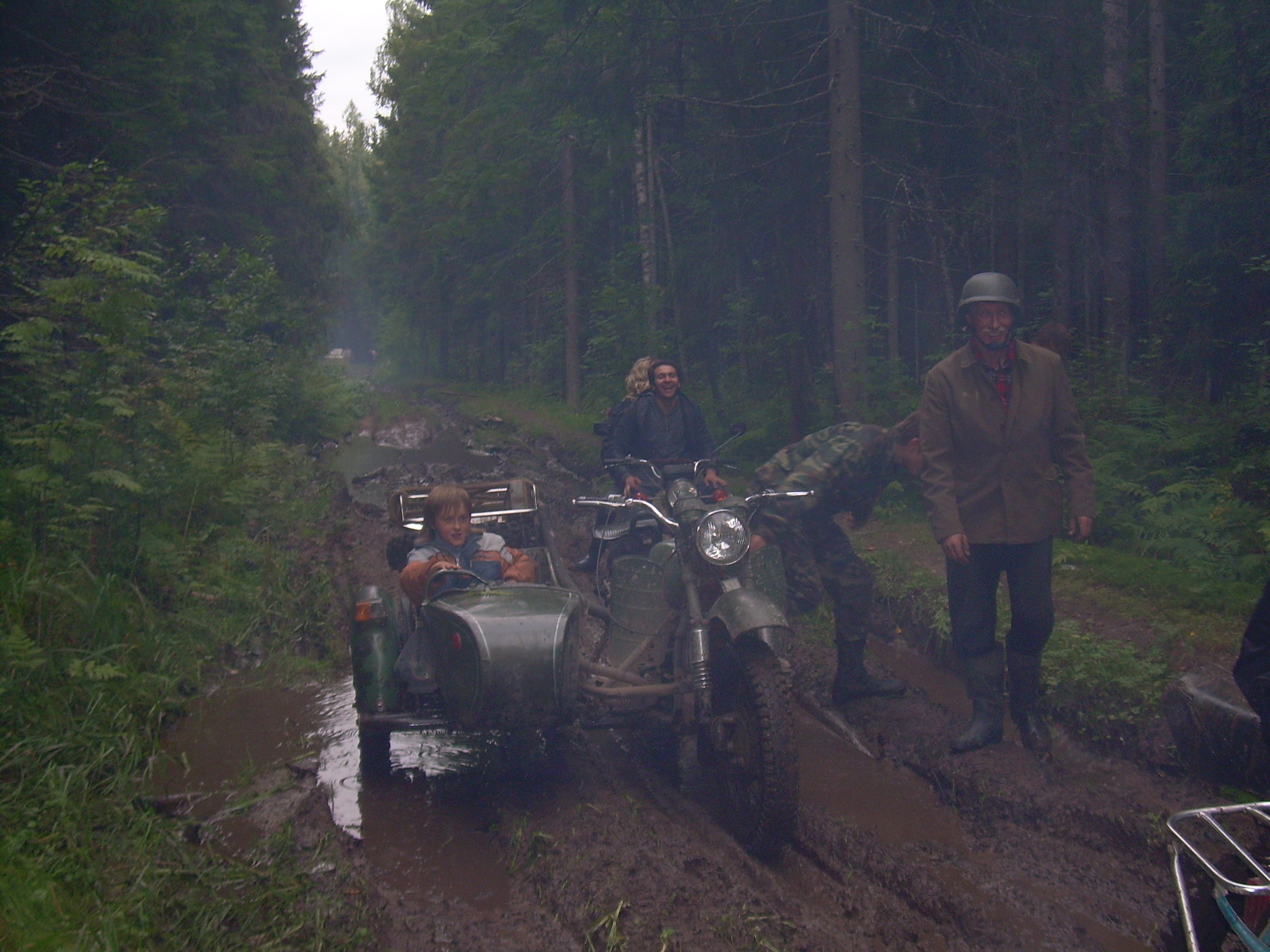 Что можно сказать. Во-первых, она приводит в точку слияния с дорогой на Лампиярви, которая всем известна. Это дорога через бывший разрушенный мостик у газопровода на первой танковой и потом все левее и левее. Точка 5 это то мерзопакостное болотце с черной водой недалеко от Лампиярви. Там встретились четыре человека на двух мокиках, которые ехали от Лампиярви. На вопрос - как там дорога, они показали штаны, забрызганные до подмышек и сказали, что там везде так. Это болотце они, кстати, преодолевали сходу, не слезая с мокиков. Правда, не посередине лужи, а по кромке. И тут показался ОН! Это был Газ-66 с кунгом, с пропуском МЧС, с лебедкой и вообще. Ехал он как раз по той дороге, которую описываю. Тут он с нее сворачивает, хреначит, ломая елки и перемахивая окопы. Ну не хватало ему места, чтобы хорошо вписаться в левый поворот к Лампиярви. Потом не напрягаясь проехал черную грязную жижу и скрылся за деревьями. Вот что надо брать! А то все – Лендкрузер… Лендровер… Ниссан Патрол там всякий…
