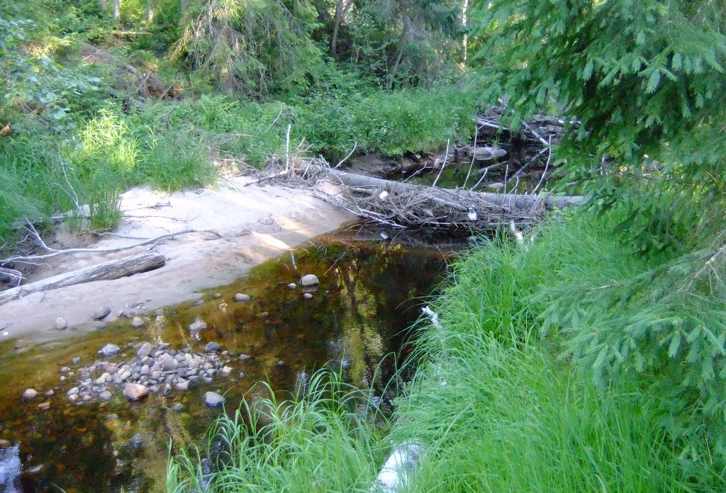 На пути "туда" реку переходили вброд (о глубине можно судить и по этому снимку), а обратно переходили по одной из "бобровских" плотин, которых там множество.