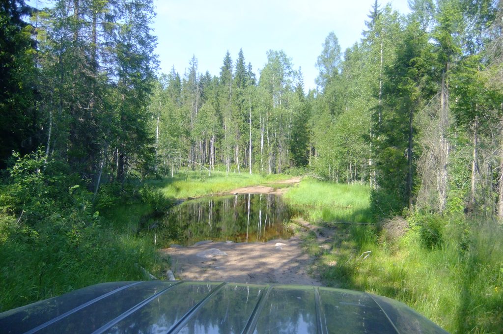 Или вот такие. В этом озерце Hunter ощутимо стал заваливаться на правый борт, тем не менее искусство водителя и мощь отетчественного автопрома победили. Выехав на дорогу, Greek лишь невозмутимо заметил: "Да, надо было брать левее..."