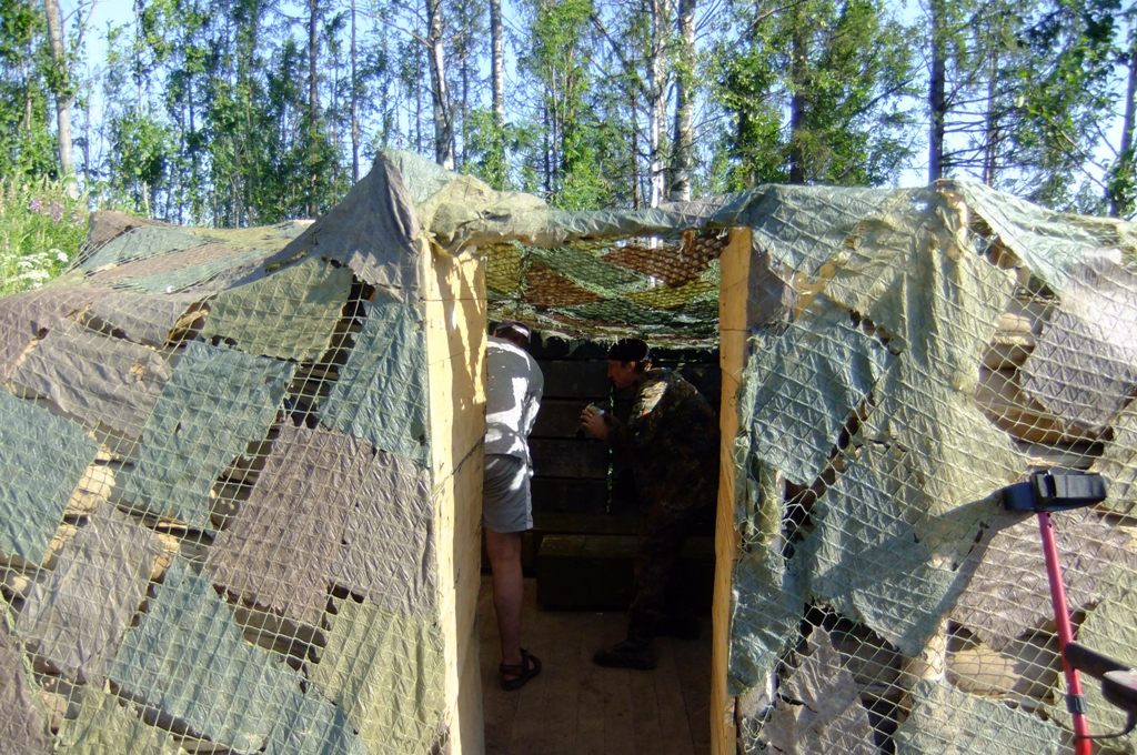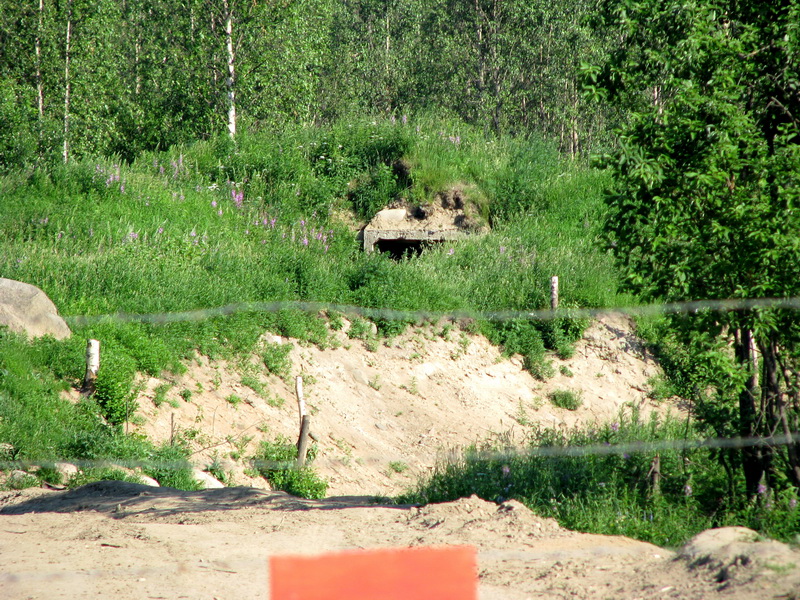 Вся прилегающая территория усеяна осколками. Можно себе представить, что ждёт посетителя этих мест во время взрывов. На территории, окружённой колючкой, ветки деревьев кастрированы разлетающимся железом. Есть два перпендикулярных друг другу железобетонных укрытия - одно со входом на западе, другое со входом на юге. Построены из типовых ж/б "рамок", как и укрытия у Харвази. Взрывают на двух пустырях по обеим сторонам бункеров. Северная поляна используется с давних пор - воронки видно в Гугле. Южная - свежая. Даже несмотря на удалённость и малую посещаемость этих мест странно, что территория никак не охраняется. Типа, "кто пришёл - мы не виноваты". Как и в случае с карьером в Калелово, не покидает ощущение, что тут тоже "дух выбивают" из бывшего поселения - всё происходит ровно там, где раньше была деревня Термолово..